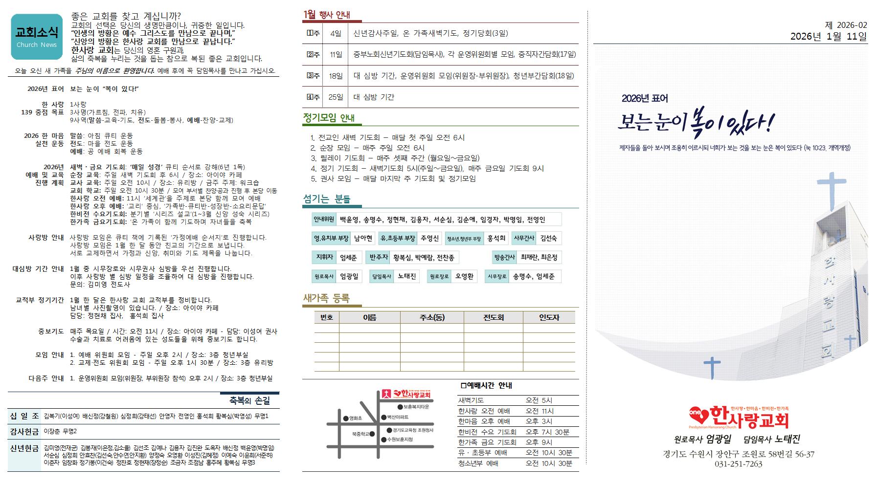 본문 지도 준비중입니다 페이스북 공유 트위터 공유 이전글 list_alt목록 다음글 댓글 0 등록된 댓글이 없습니다. arrow_circle_up arrow_circle_up list_alt목록 주보[2026년 1월 11일] 페이지 정보 작성일 2025.02.21 (12:40:38) 조회수180 첨부파일 1JUBO2026-020111002.jpg ( 1회 ) 첨부파일 2JUBO2026-020111001.jpg ( 1회 ) 본문내용 참조 페이스북 공유 트위터 공유 이전글 list_alt목록 다음글 이전글 부교역자 섬김의 날 다음글 주보[2026년 1월 4일]