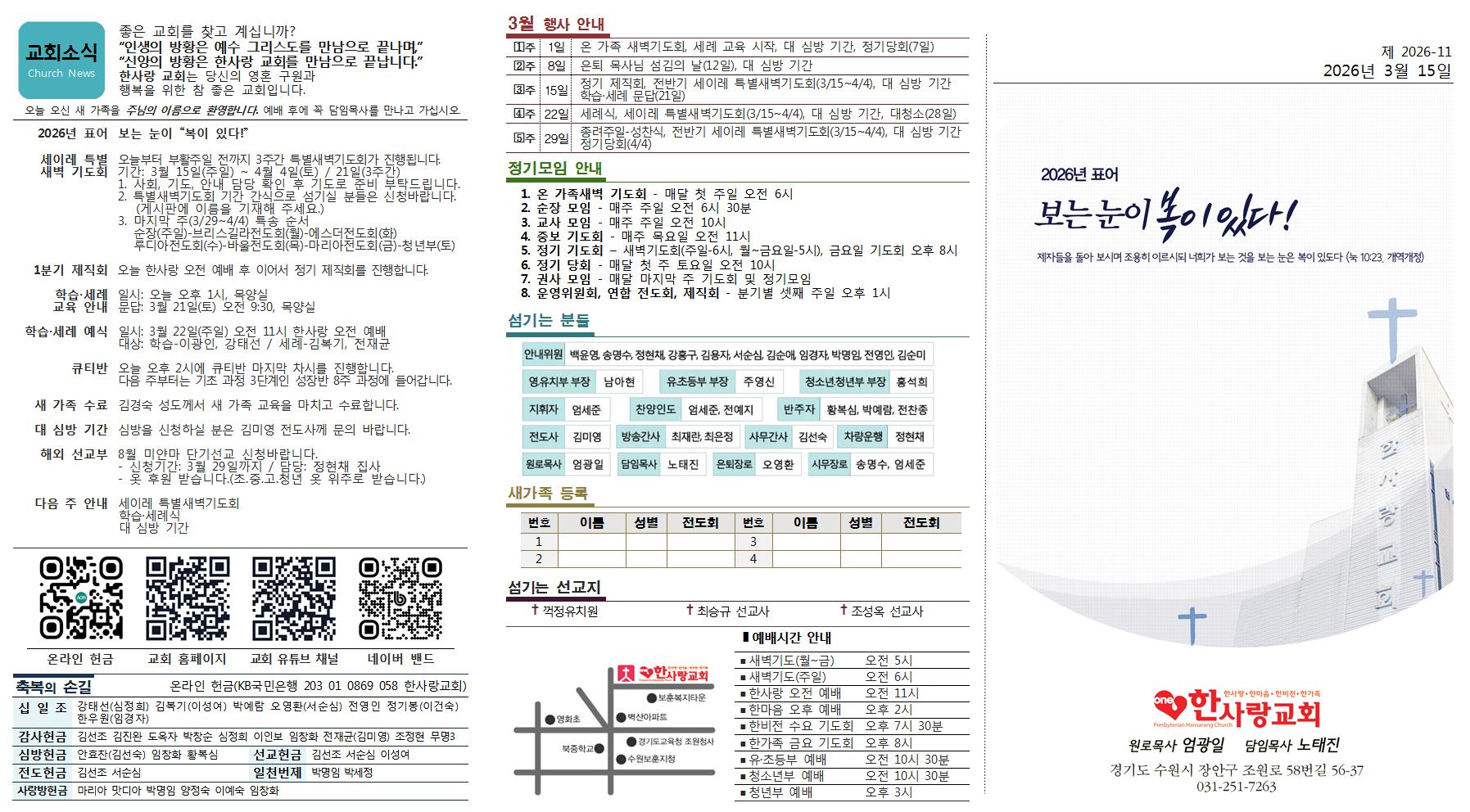 본문 주보[2026년 3월15일] 지도 준비중입니다 페이스북 공유 트위터 공유 카카오톡 공유 list_alt목록 다음글 댓글 0 등록된 댓글이 없습니다. arrow_circle_up list_alt목록 주보[2026년 3월15일] 페이지 정보 작성일 2026.03.16 (09:01:56) 조회수2 첨부파일 1JUBO2026-1120260315002.jp ( 0회 ) 첨부파일 2JUBO2026-1120260315001.jp ( 0회 ) 본문내용 참조 페이스북 공유 트위터 공유 카카오톡 공유 list_alt목록 다음글 다음글 순장교단 은퇴 목사님들, 봄맞이 교제의 시간 가져(2026년 3월 12일)