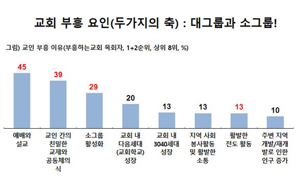 또한 그는 ‘부흥하는 교회의 특징’에 대해서도 구체적으로 설명했다. 단순한 외형적 성장보다 ▲명확한 비전과 방향성 ▲목회자의 일관된 리더십 ▲성도 참여를 이끄는 구조 ▲지속적인 제자훈련 시스템을 갖춘 교회들이 건강한 성장을 이루고 있다고 분석했다. 특히 목회자의 리더십에 있어 “방향을 제시하고 끝까지 일관성을 유지하는 것이 중요하다”고 강조했다.
