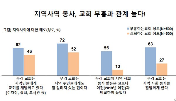 세 번째로는 ‘지역사회와의 연결성 강화’를 제시했다. 그는 “지역사회와 단절된 교회는 더 이상 성장하기 어렵다”며, 교회가 지역의 필요를 이해하고 섬길 때 자연스럽게 복음의 통로가 열린다고 말했다. 이를 위해 교회는 공공성과 신뢰 회복을 중요한 가치로 삼아야 한다고 강조했다.