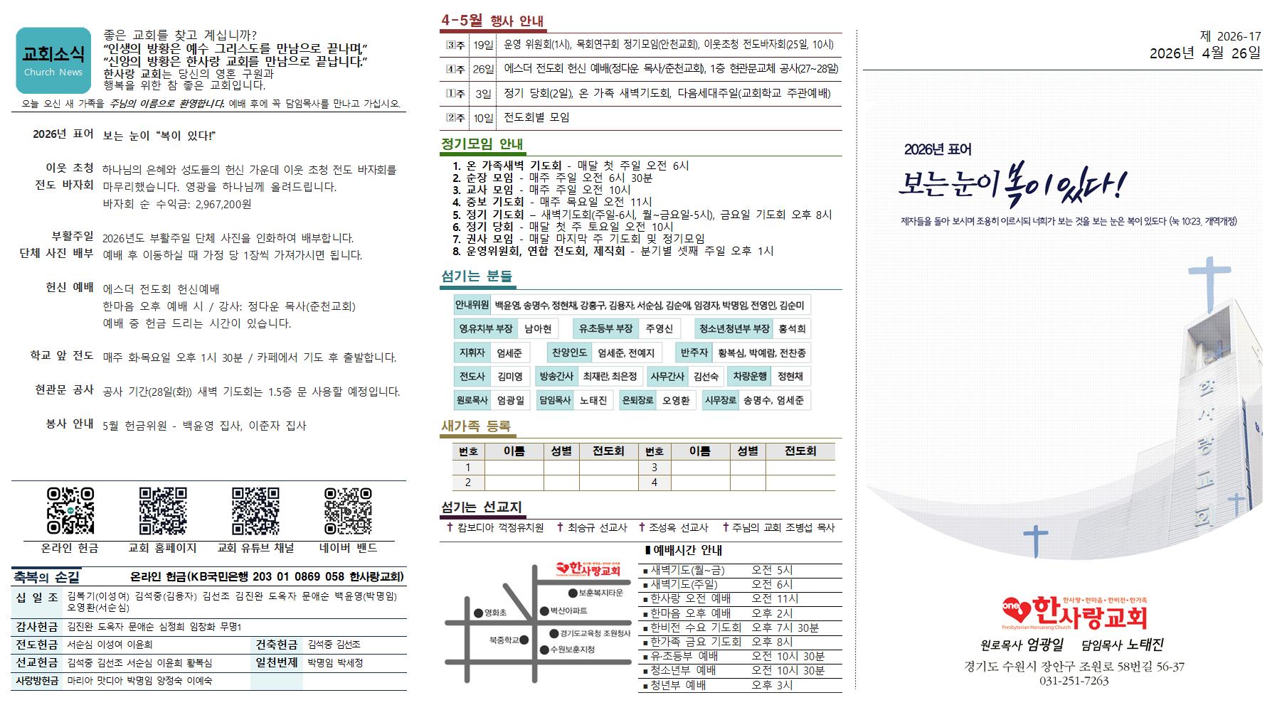 본문 주보[2026년 4월 26일] 지도 준비중입니다 페이스북 공유 트위터 공유 카카오톡 공유 list_alt목록 다음글 댓글 0 등록된 댓글이 없습니다. arrow_circle_up list_alt목록 주보[2026년 4월 26일] 페이지 정보 작성일 2026.04.28 (13:06:27) 조회수1 첨부파일 1JUBO2026-1720260426002.jp ( 0회 ) 첨부파일 2JUBO2026-1720260426001.jp ( 0회 ) 본문내용 참조 페이스북 공유 트위터 공유 카카오톡 공유 list_alt목록 다음글 다음글 순장총회 목회연, 급변하는 시대 속 한국교의 방향성 모색
