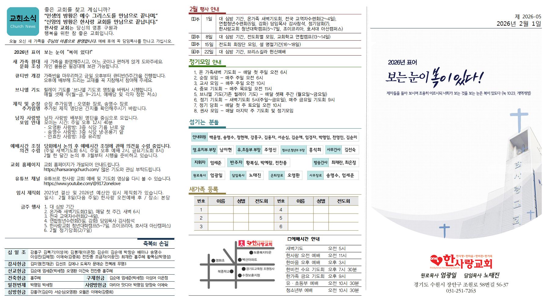 본문 2026년 2월 8일(주보) 지도 준비중입니다 페이스북 공유 트위터 공유 list_alt목록 다음글 댓글 0 등록된 댓글이 없습니다. arrow_circle_up list_alt목록 2026년 2월 8일(주보) 페이지 정보 작성일 2026.02.03 (08:13:50) 조회수10 첨부파일 1JUBO2026-052026.02.01002. ( 0회 ) 첨부파일 2JUBO2026-052026.02.01001. ( 0회 ) 본문내용 참조 페이스북 공유 트위터 공유 list_alt목록 다음글 다음글 노태진 담임목사 취임
